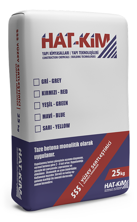 Pigment, özel katkı ve çimento esaslı, beton yüzeyine monolitik olarak uygulanan kullanıma hazır yüzey sertleştirme harcıdır.